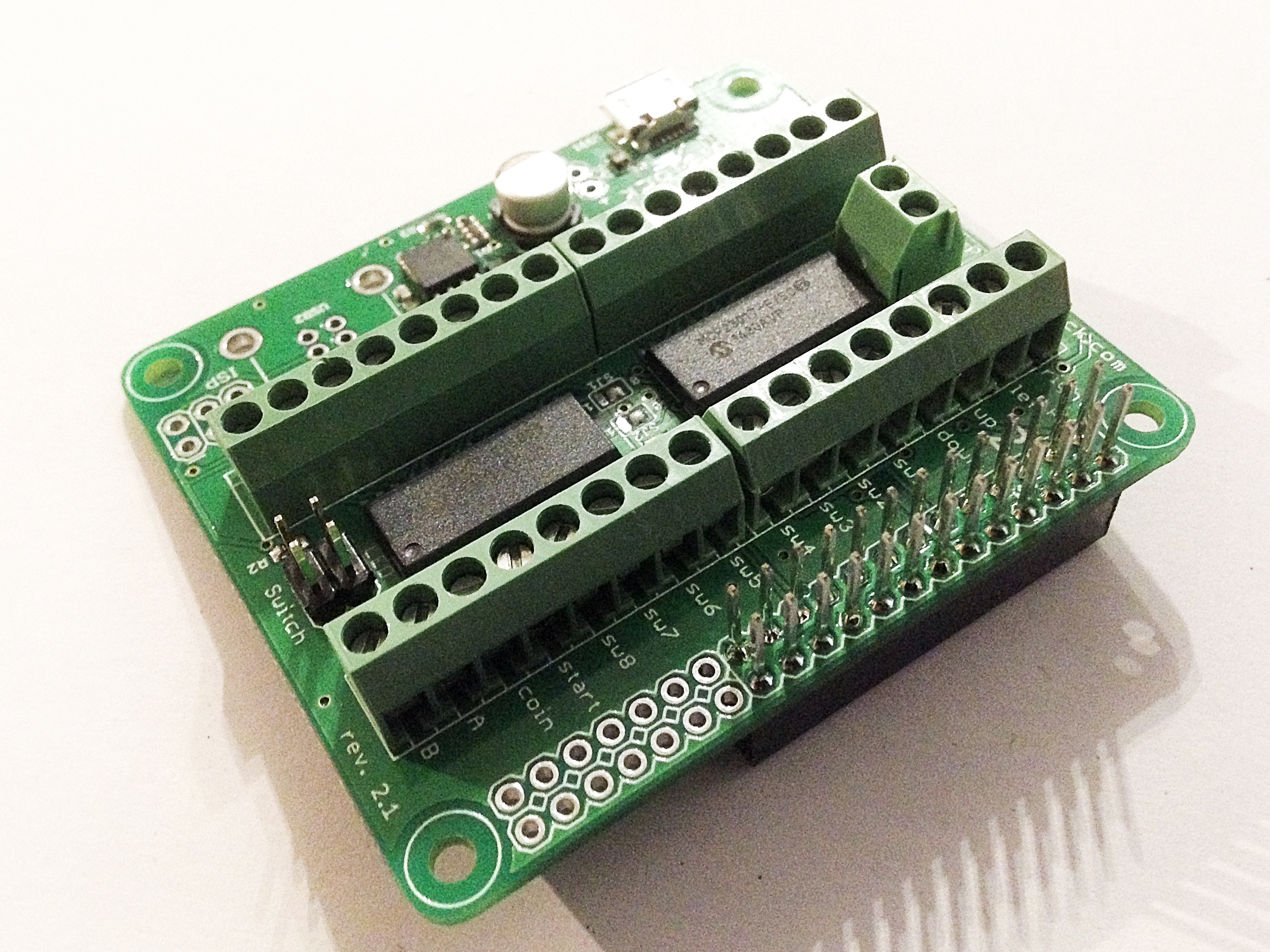 The GPIO pins can be accessed from the Raspberry Pi via the SPI interface. The ControlBlock makes it very easy to connect arcade controllers for up to two players. The open-source driver for the ControlBlock can be configured for various controller types. It supports, e.g., arcade controllers that are mapped to game pad devices, as well as a mapping to a MAME keyboard configuration. The ControlBlock also supports, e.g., the polling of SNES and NES controllers so that it provides the functionality of the RetroPie GPIO Adapter.